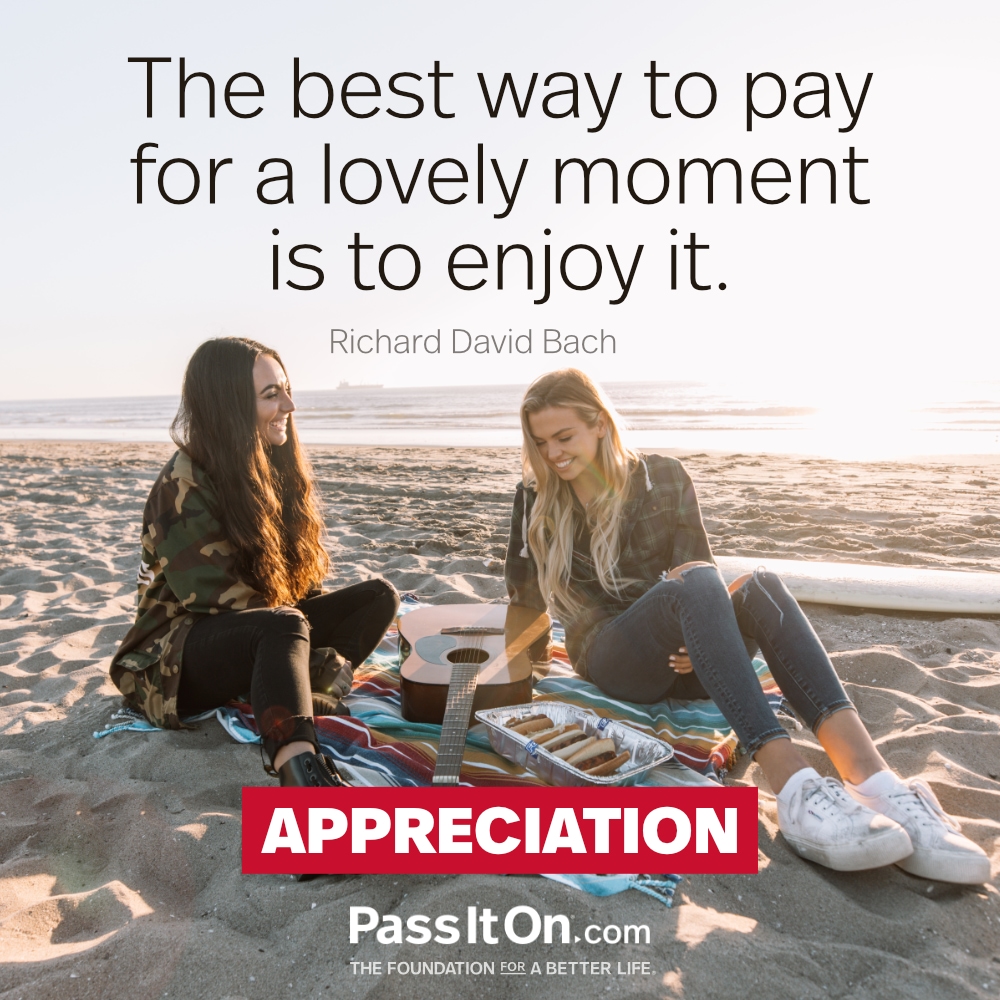 The best way to pay for a lovely moment is to enjoy it. —Richard David Bach