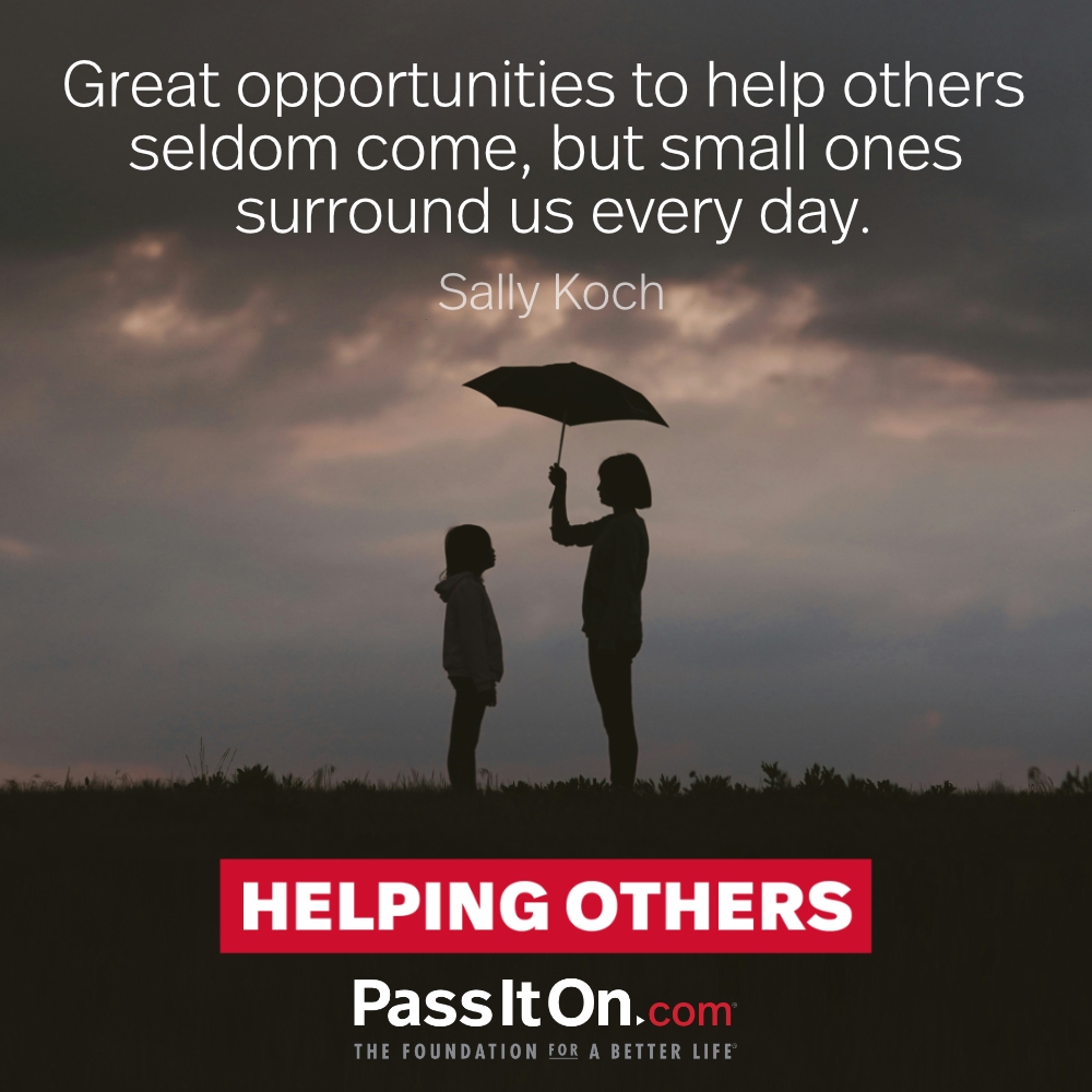 Helping another person in a small way may not make a difference for the other person, but it will very likely have a positive effect on you.
