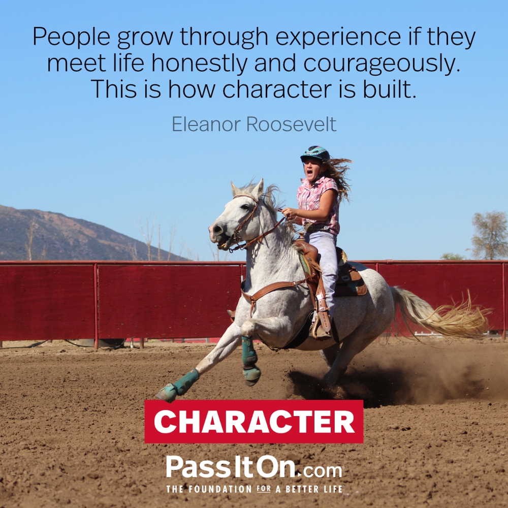 People grow through experience if they meet life honestly and courageously. This is how character is built. —Eleanor Roosevelt