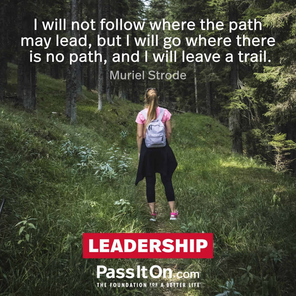 I will not follow where the path may lead, but I will go where there is no path, and I will leave a trail. —Muriel Strode