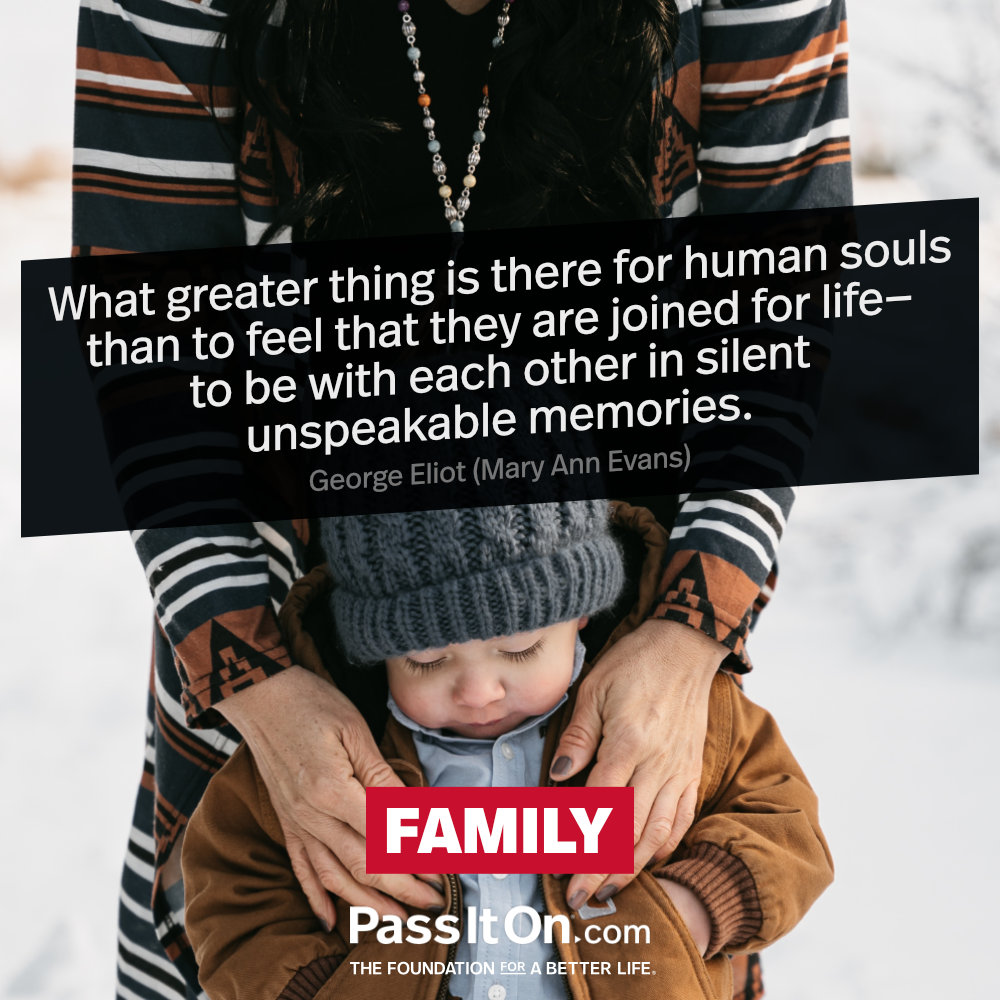 What greater thing is there for human souls than to feel that they are joined for life - to be with each other in silent unspeakable memories. —George Eliot [Mary Ann Evans]
