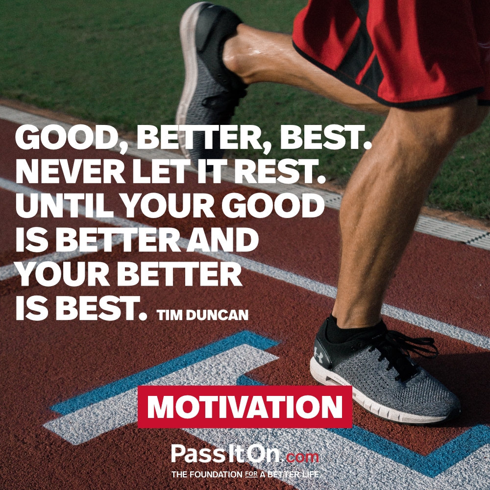 Also, we learned it as, "until your good becomes your better, and your better becomes your best".