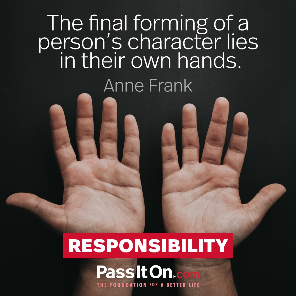 The final forming of a person's character lies in their own hands. —Anne Frank