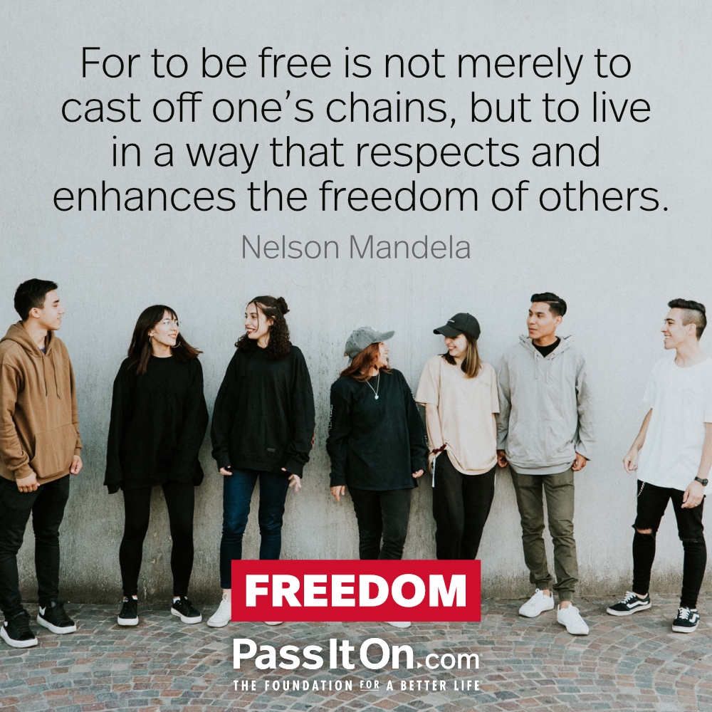 For to be free is not merely to cast off one's chains, but to live in a way that respects and enhances the freedom of others. —Nelson Mandela