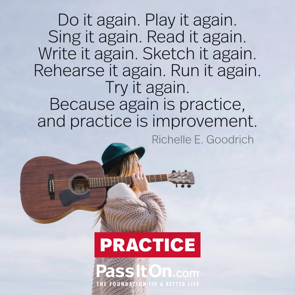 “Do it again. Play it again. Sing it again. Read it again. Write it again. Sketch it again. Rehearse it again. Run it again. Try it again.