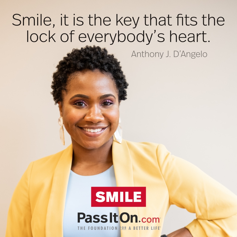 Smile, it is the key that fits the lock of everybody’s heart. —Anthony J. D'Angelo