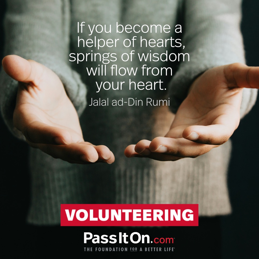 If you become a helper of hearts, springs of wisdom will flow from your heart. —Jalal ad-Din Rumi