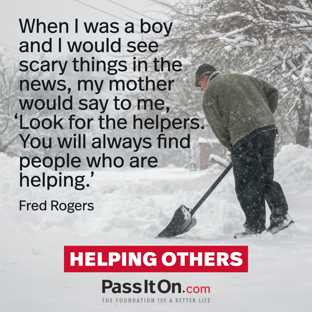 “When I was a boy and I would see scary things in the news, my mother would say to me, ‘Look for the helpers. You will always find people who are helping.’”