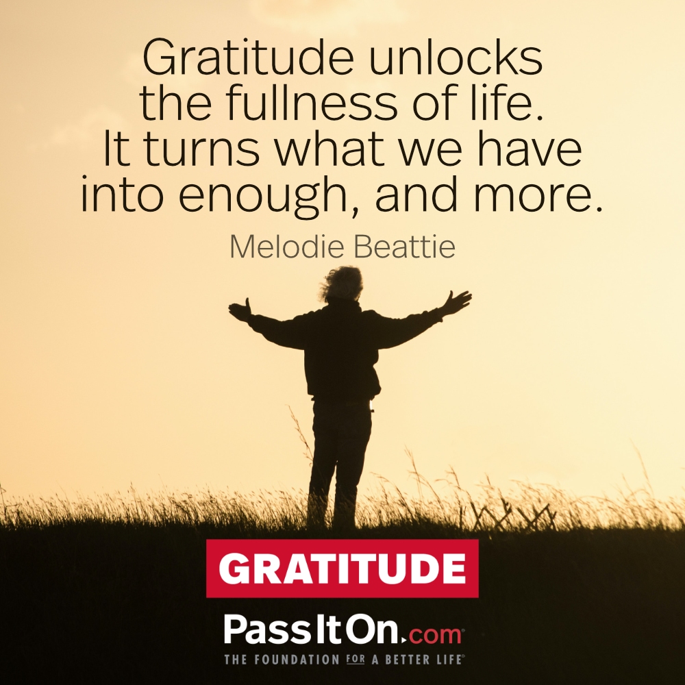 Gratitude unlocks the fullness of life. It turns what we have into enough, and more. —Melody Beattie