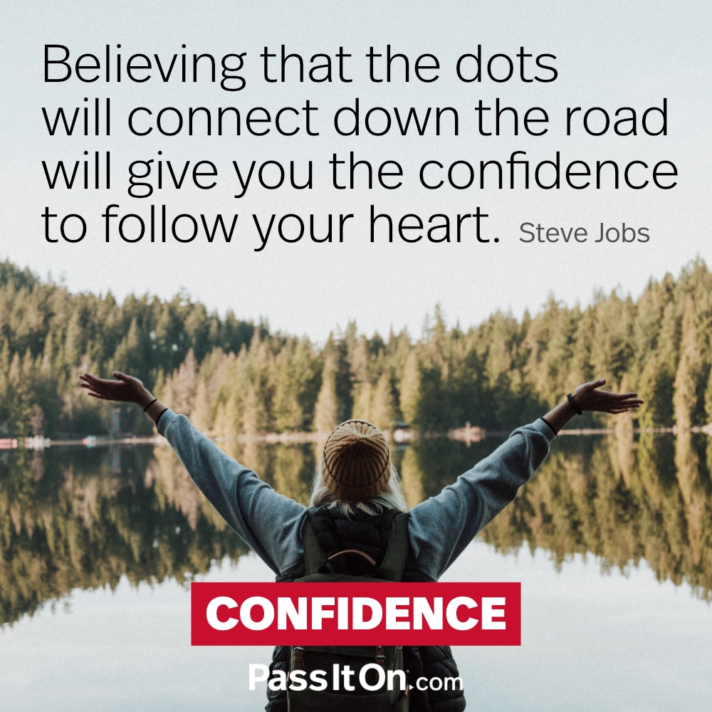 Believing that the dots will connect down the road will give you the confidence to follow your heart. —Steve Jobs