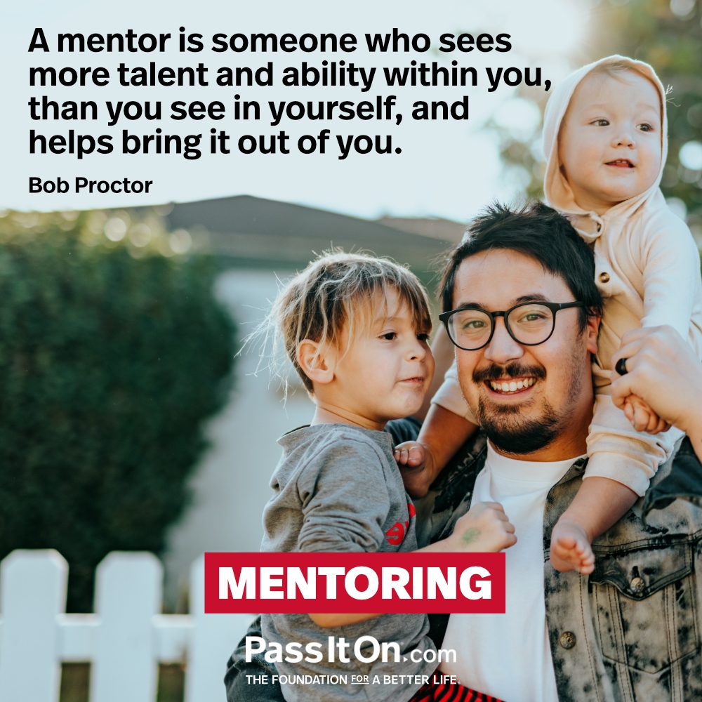 A mentor is someone who sees more talent and ability within you, than you see in yourself, and helps bring it out of you. —Bob Proctor