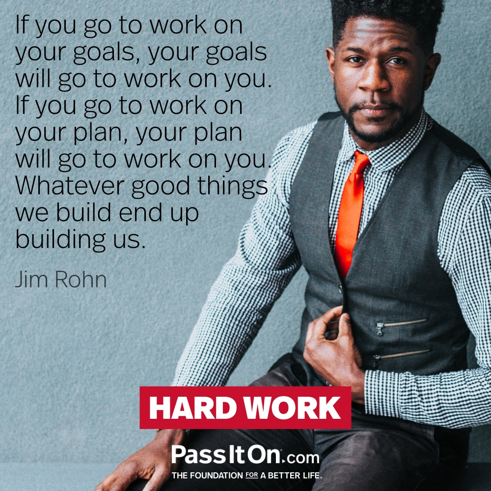 “If you go to work on your goals, your goals will go to work on you. If you go to work on your plan, your plan will go to work on you. Whatever good things we build end up building us.”