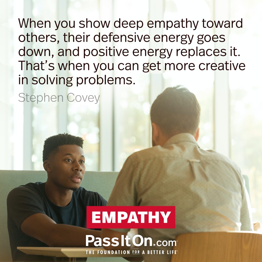 “When you show deep empathy toward others, their defensive energy goes down, and positive energy replaces it. That’s when you can get more creative in solving problems.”