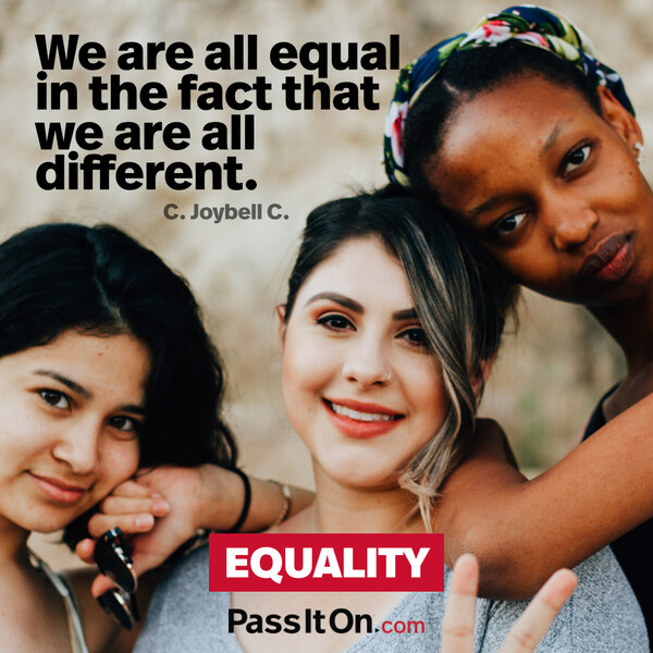 Equality is the idea that all people are equal, regardless of age, gender, sexual orientation, ethnicity, race, disability, or religious background. All people are equal period. ❤