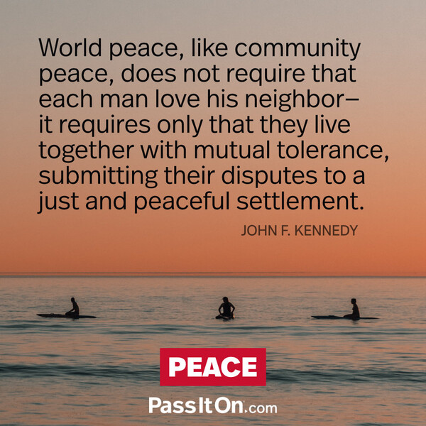 Peace is what everybody wants. Many things smother peace,greed, hate, revenge etc... Live peacefully, people learn from watching. Try it.